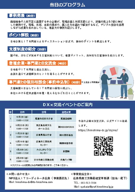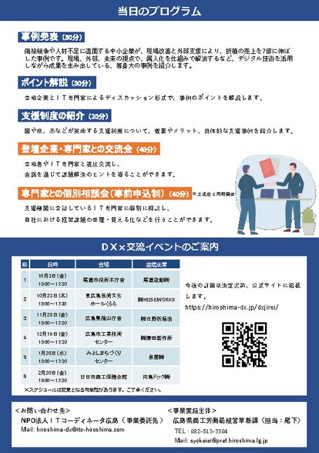 ●お問合せ先:(事業委託先)NPO法人ITコーディネータ広島 Mail: hiroshima-dx@itc-hiroshima.com